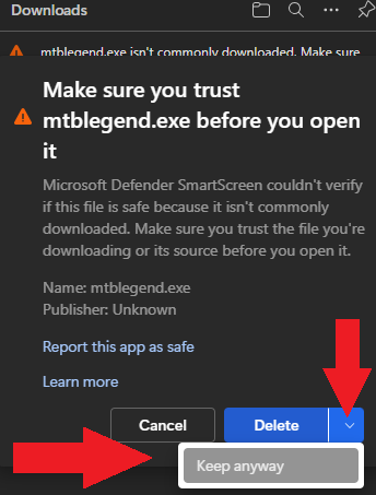 nach der Einrichtung eines neuen Windows-PC habe ich Base Camp installiert. Beim Download z.B. der Deutschlandkarte erscheint der Hinweis, dass diese Karte nicht häufig runtergeladen wird und ich sicherstellen soll, dass ich diesem Download vertrauen kann. Die EXE lässt sich nicht öffnen.